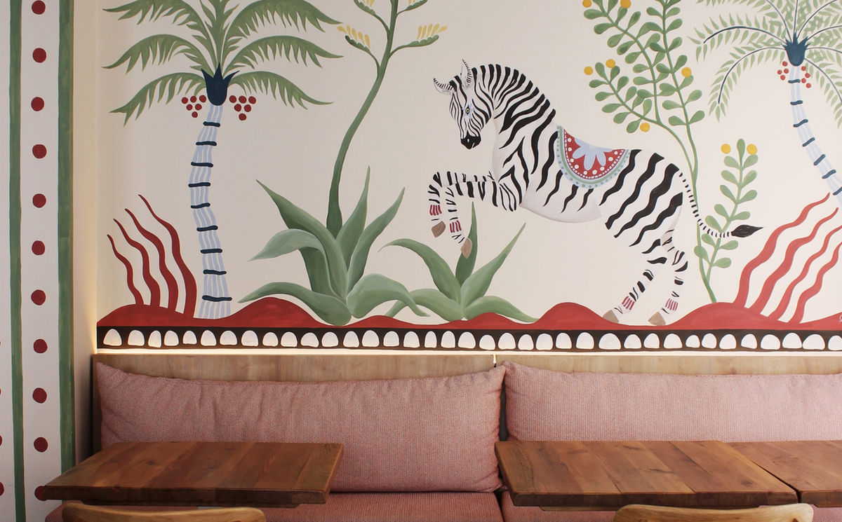 Project of two handmade murals for the private office area of the Vaqueta Gastro Mercat restaurant.